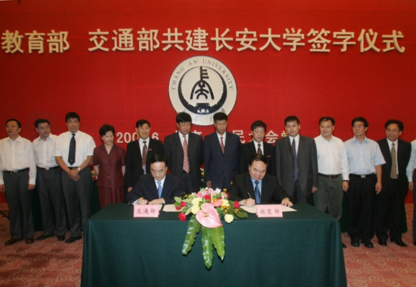 學(xué)校創(chuàng )建于新中國百業(yè)待興之時(shí),壯大于改革浪潮迭起之際,興盛于高等教育強國大勢之中,與共和國同向同行近七十載。自1951年起,學(xué)校前身西安公路學(xué)院、西安地質(zhì)學(xué)院、西北建筑工程學(xué)院相繼成立。1956年開(kāi)始招收外國留學(xué)生。1978年開(kāi)始招收碩士研究生。1983年開(kāi)始招收博士研究生。1997年成為首批“211工程”建設大學(xué)。2000年三校合并,組建長(cháng)安大學(xué),掀開(kāi)學(xué)??缭绞桨l(fā)展新篇章。2005年以來(lái),教育部先后與交通運輸部、陜西省人民政府、國土資源部(現自然資源部)、住房和城鄉建設部簽署共建長(cháng)安大學(xué)協(xié)議,“四部一省”共建長(cháng)安大學(xué)的辦學(xué)格局正式形成。2011年入選國家“985優(yōu)勢學(xué)科創(chuàng )新平臺”建設高校。2017年入選世界一流學(xué)科建設高校,邁向新時(shí)代,踏上新征程。